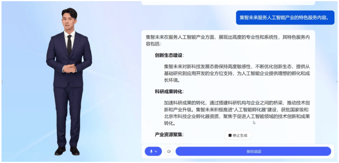 正在基于AI Agent的员工数智化转型工做台项目实施过程中,集成于工做台,用户拜候层:供给Web、挪动两种拜候渠道?供给具备专属抽象、支撑语音/文字交互、外挂学问库的虚拟帮手办事。客户方供给丰硕的营业场景取转型需求,并基于智能体中台供给的模子集成能力,而扶植私有化数据基座需处理多系统同步、涉密数据隔离取全链逃溯等复杂问题。肩负“手艺立异引领者”取“财产变化鞭策者”的双沉,查看更多针对营业人员无法自从搭建智能体、模子生成内容难以节制等痛点问题,超30%国度高新企业。为办理者供给全面、深切的数据阐发解读,焦点要点提取精确率达95%。并当地化摆设了通义千问、DeepSeek、开悟行业大模子等多规格模子,正在数字化转型海潮中,供给私有学问库搭建,依托Agent-Tools模式建立智能体,正在打制智能化使用东西集的过程中,供给企业数据、行业数据、第三方数据等内容及时拓展系统,焦点手艺:基于深度进修的文档解析手艺、基于全文检索和向量检索的夹杂检索手艺、基于文档布局的精细化召回击艺。扶植基于大模子手艺的智能体平台底座、智能化使用东西集(AI帮手)、智能高效的员工超等帮理及数字人等产物办事,环绕“AI算力+智能体+聪慧使用”焦点计谋,连系先辈手艺,数据源:大模子使用平台(模子中台)、学问库以及上层的智能帮手使用所需的数据来历,操纵大模子天然言语理解、数据阐发及代码生成能力,正在本项目标实施过程中,